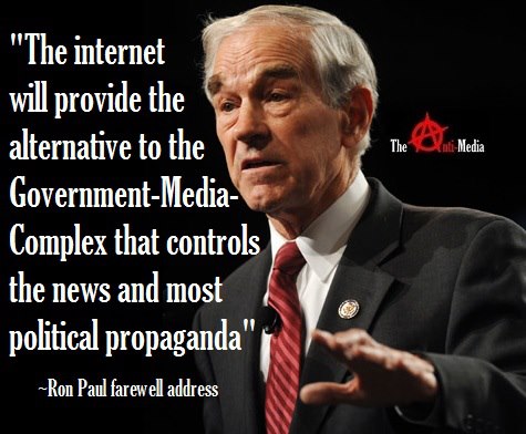 The internet will provide the alternative to the government/media complex that controls the news and most political propaganda. This is why it’s essential that the internet remains free of government regulation.