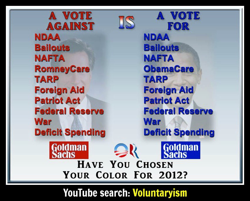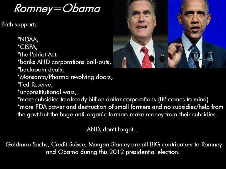 There is a man running who would put a stop to all this, but he will only win if you have the courage to get out and vote for him. Romney will not change anything if elected, so don’t vote for him out of fear for more Obama. While he may be a Muslim or a Marxist, that does not change the fact that he has continued almost all of Bush’s policies, and continued to move us along a path of empire and totalitarianism.