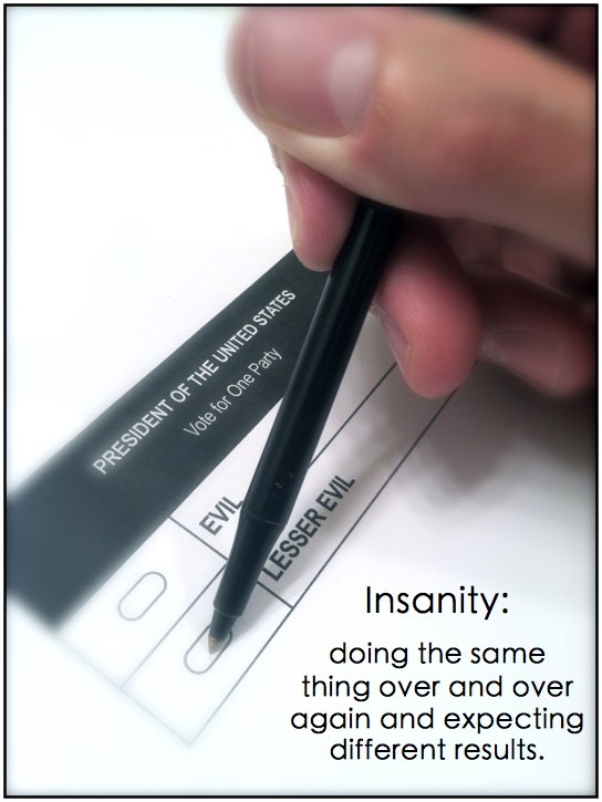 What if you all tell your friends what’s really going on, and we all vote for Gary Johnson in November? Will it actually make a difference if you vote for the lesser of two evils? Or will it make a real difference if we vote on principle and advance the cause of liberty?