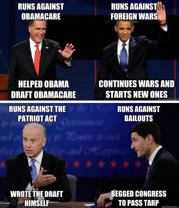The shady flip flop nature of Mitt Romney and Barack Obama, and their media accomplices, help paint a bland picture that you can attach your aspirations to. In reality, they are both continuing the big government programs of the Bush administration. Nothing changes from one administration to the next.