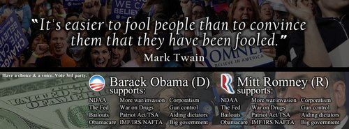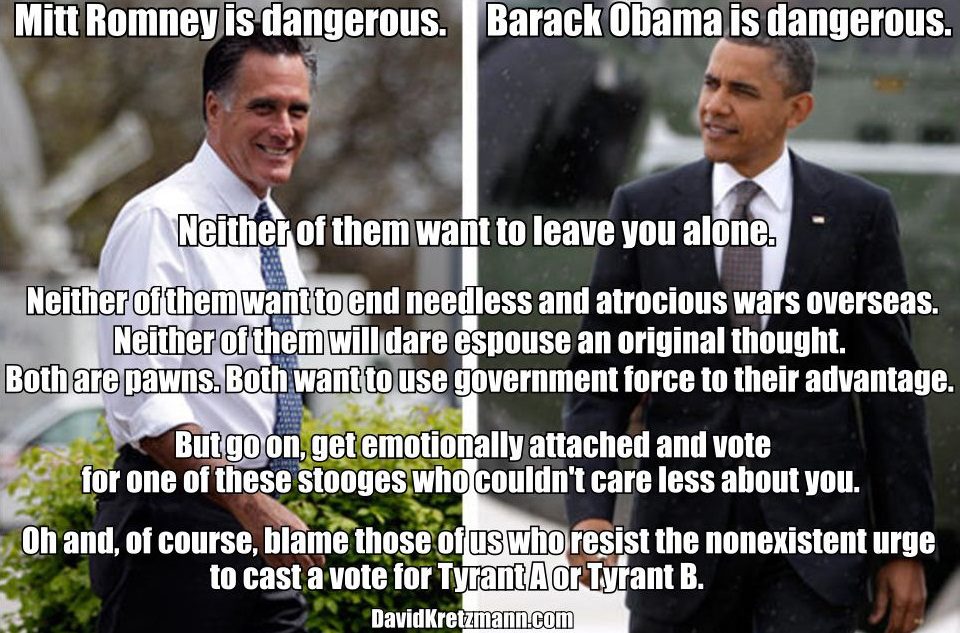 I have mixed feelings about the 2012 election. I did not vote for Mitt Romney, but I also did not want Obama to win. I did everything I could to strengthen the liberty movement, and to help the libertarians to offset the corruption of the republican party. I voted for Gary Johnson for president to give the libertarians a cutting edge to build from, but I also voted for many republicans in house and senate seats to overthrow the diluted democrats, who simply do not get it.