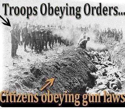Incidentally all the greatest dictators of the last century abolished gun rights and confiscated weapons before mass murdering millions of people. Just food for thought.