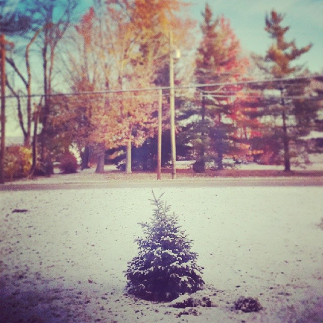 I woke up in the morning, stiff and sore, but elated to see what looked like Christmas outside. There was a light dusting of snow covering our newly planted trees, and the yard looked amazing.