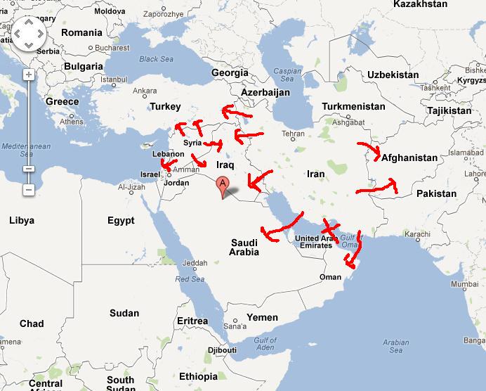 Russia could drop down from the north and support Iran against Iraq and Afghanistan , while attacking Turkey. China could enter the conflict from the east and enter through Afghanistan. Both Russia and China could use their Navy’s to attack from the Arabian sea and Mediterranean sea. For good measure they could mine the straight of Hormuz, the gulf of Aden, the Suez canal, and even the straight of Gibraltar. Not only cutting off half the world’s oil supply from the middle east, but also blocking in any NATO ships in the Mediterranean.